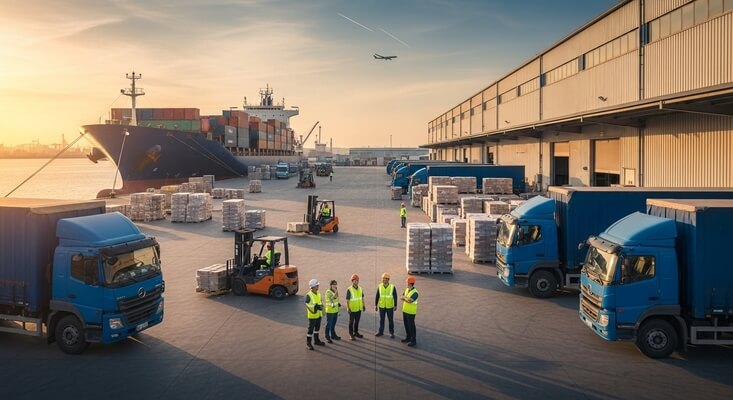 Escolha do modal (marítimo, aéreo ou rodoviário), LCL/FCL, reserva, coleta, documentação de transporte e seguro de carga.